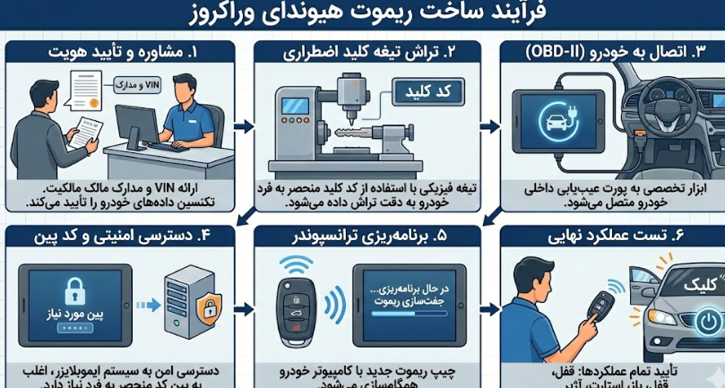 فرایند ساخت سوئیچ و ریموت برای هیوندای وراکروز یک پروسه کاملاً تخصصی است که شامل مراحل زیر میشود: